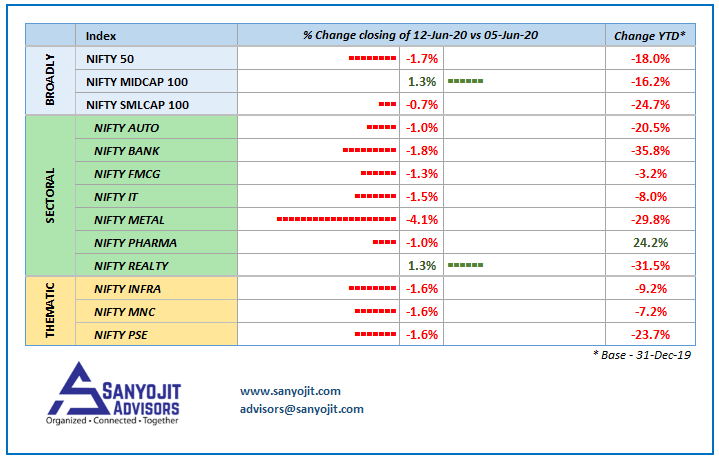 Comparison of indices – closing 12th June 2020 vs 5th June 2020
