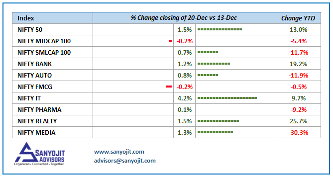 Comparison of indices – closing 20th December vs 13th December