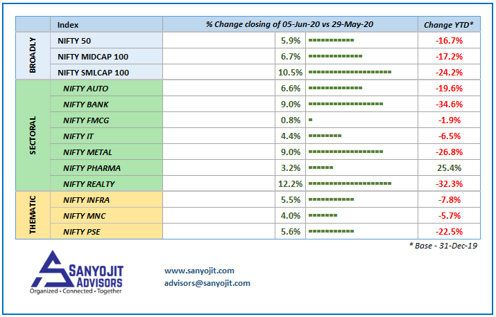 Comparison of indices – closing 5th June 2020 vs 29th May 2020