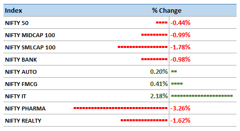 Week with a downward pressure where it gave up early gains. Nifty lost 0.44% last week (compared to last Friday – 31st May 2019). Downward movement has been broad-based with mid cap and small cap also losing steam. Among sectors, auto (up 0.20%), fmcg (up 0.41%) and IT (up 2.18%) have been gainers while significant downtrend was seen in Pharma, Realty and Banks.